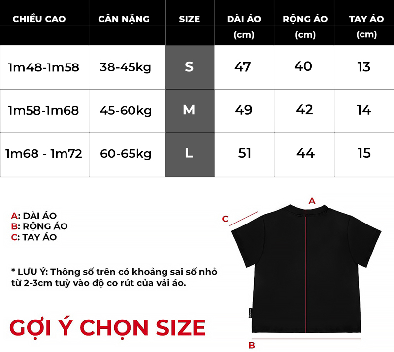 Thông tin chọn size ( kích cỡ ) áo thun local brand nữ Davies