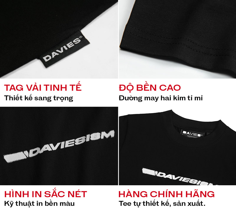 DAVIES luôn tiên phong áp dụng công nghệ vào những sản phẩm của mình. Kỹ thuật hình in tiên tiến giúp logo nổi bật thể hiện được hiệu quả tinh thần đến người mặc.
