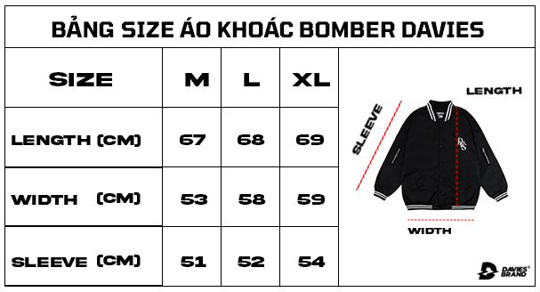 Áo khoác bomber local brand Davies - Thông số kỹ thuật