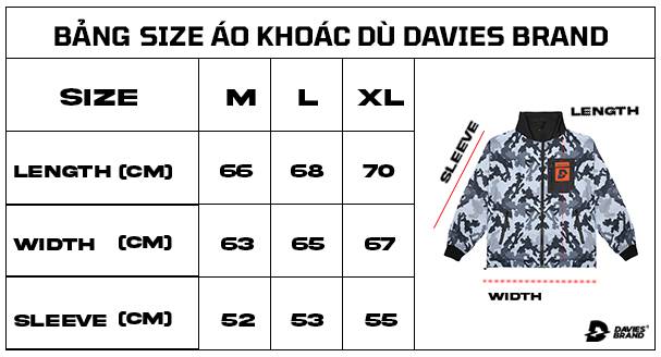 Áo khoác dù nam đẹp từ form áo chuẩn size riêng Davies phù hợp với hầu hết người mang.