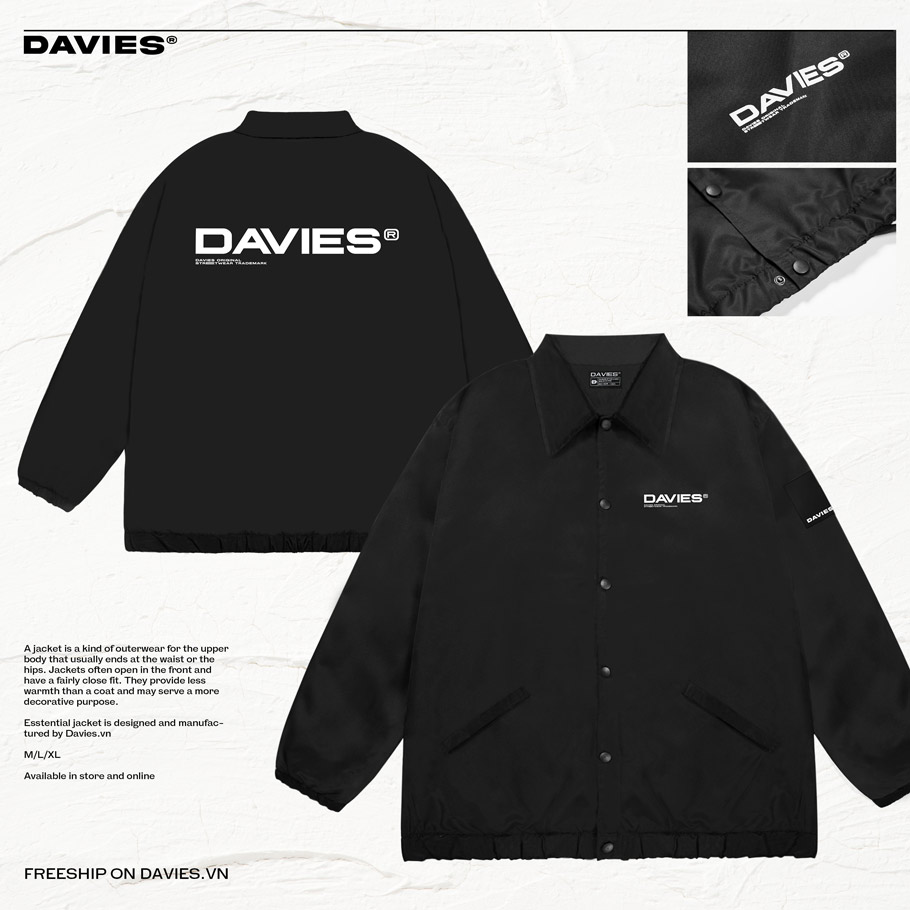 Áo khoác local brand Davies Essential Jacket được thiết kế đơn giản với tên thương hiệu được in kích thước tinh tế.