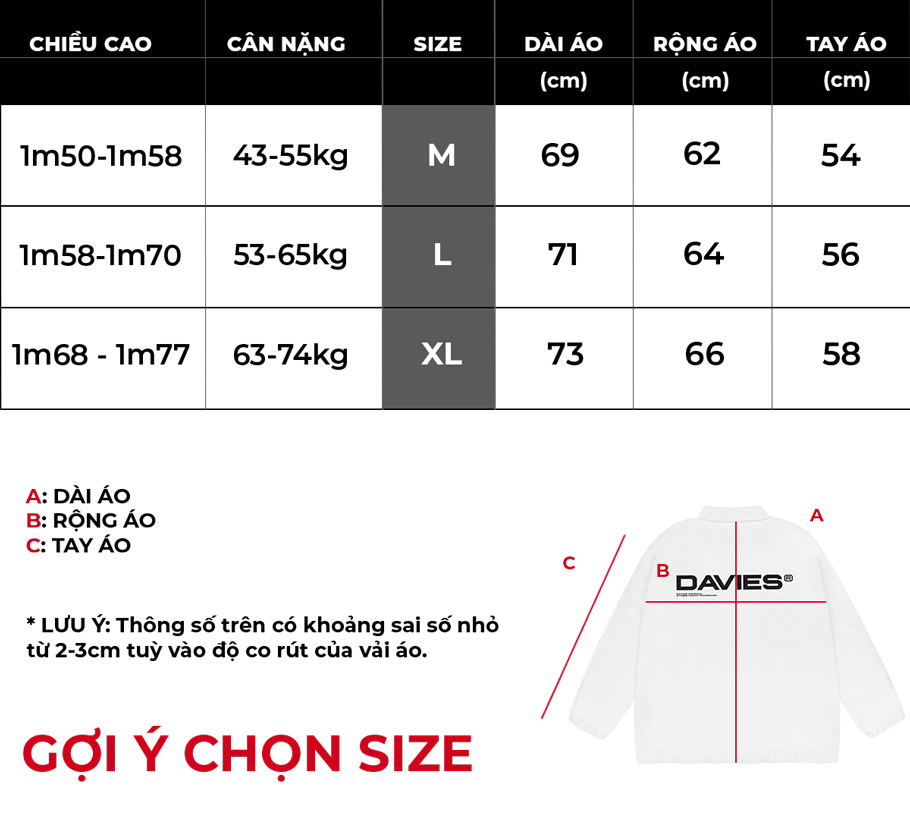 Kích thước áo khoác dù form rộng lấy trung bình cộng của hơn hàng ngàn ý kiến khách hàng. Sự cải thiện và điều chỉnh giúp cho các bạn nam và nữ dễ dàng lựa chọn size phù họpw bao gồm M/L/XL.