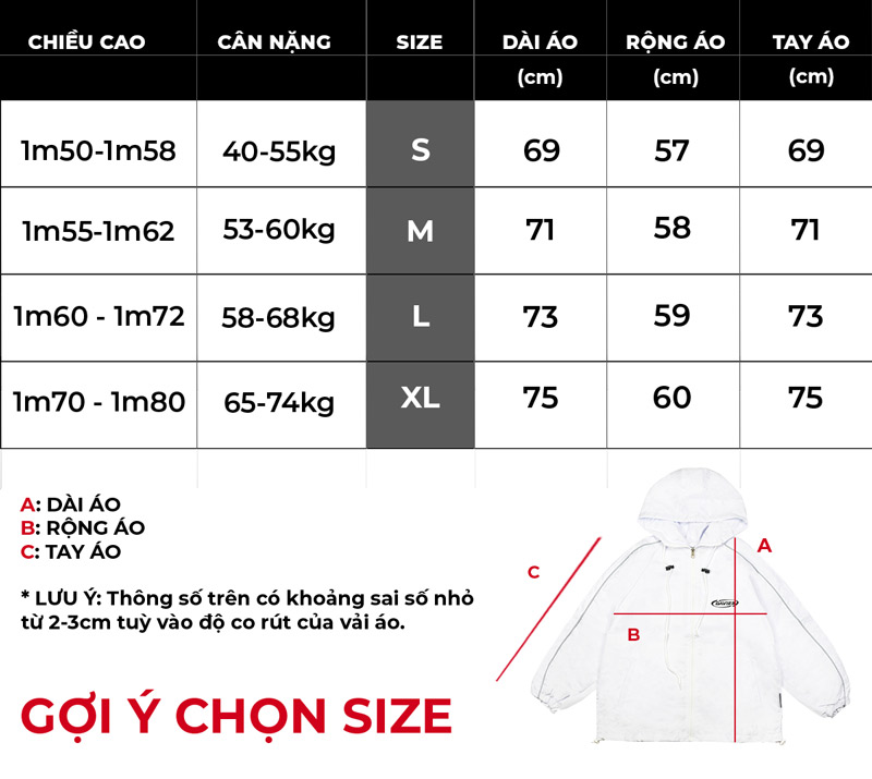 Áo khoác form rộng được thiết kế dáng cổ trụ đậm chất streetwear. Kích thước dựa trên bảng size tiêu chuẩn phù hợp với hầu người mang.
