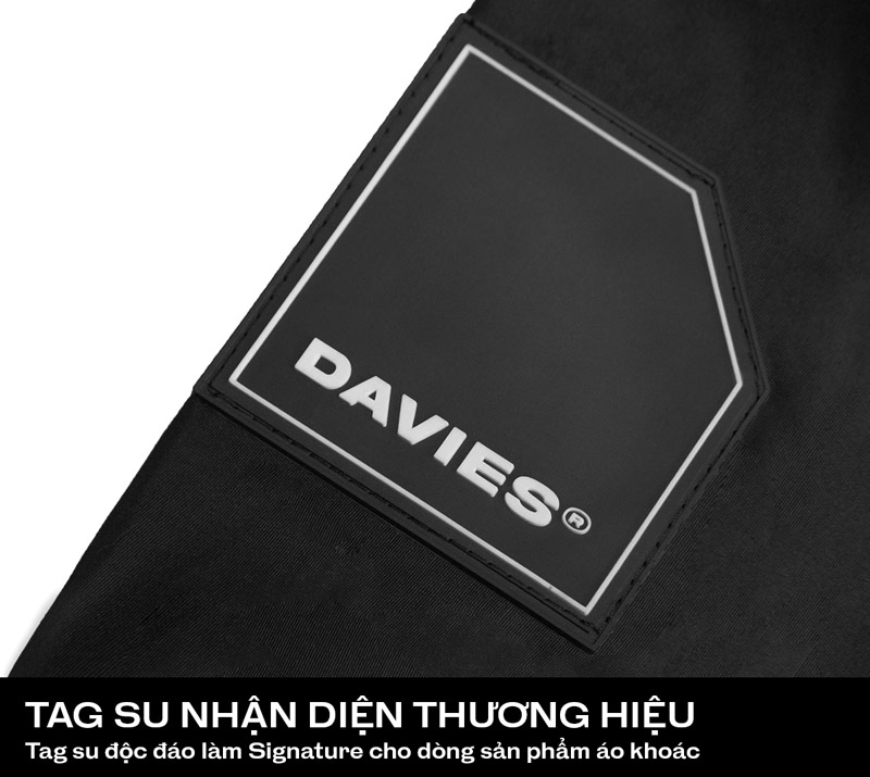 Nếu là một fan cứng bạn sẽ dễ dàng nhận ra điểm đổi mới này, Davies đã sử dụng Tag su độc đáo làm Signature cho dòng sản phẩm áo khoác.