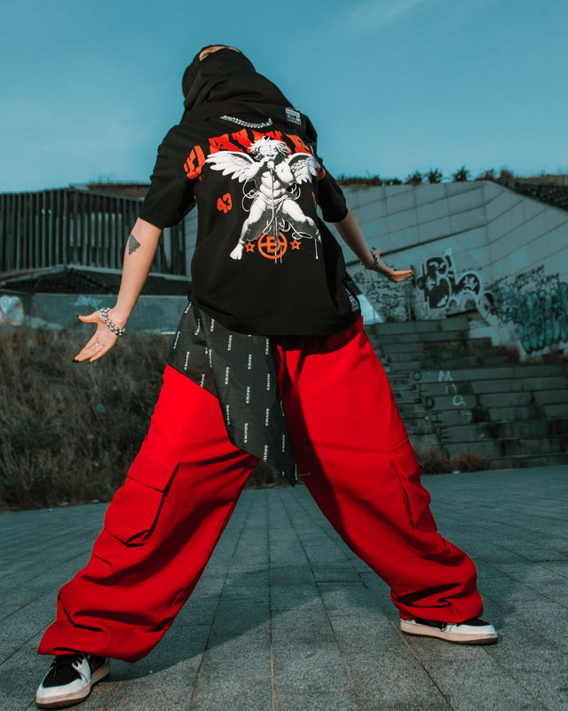 Áo thun họa tiết nam nữ với kiểu dáng ấn tượng mang đặc trưng của phong cách streetwear, được thể hiện rõ nét qua các lựa chọn size.