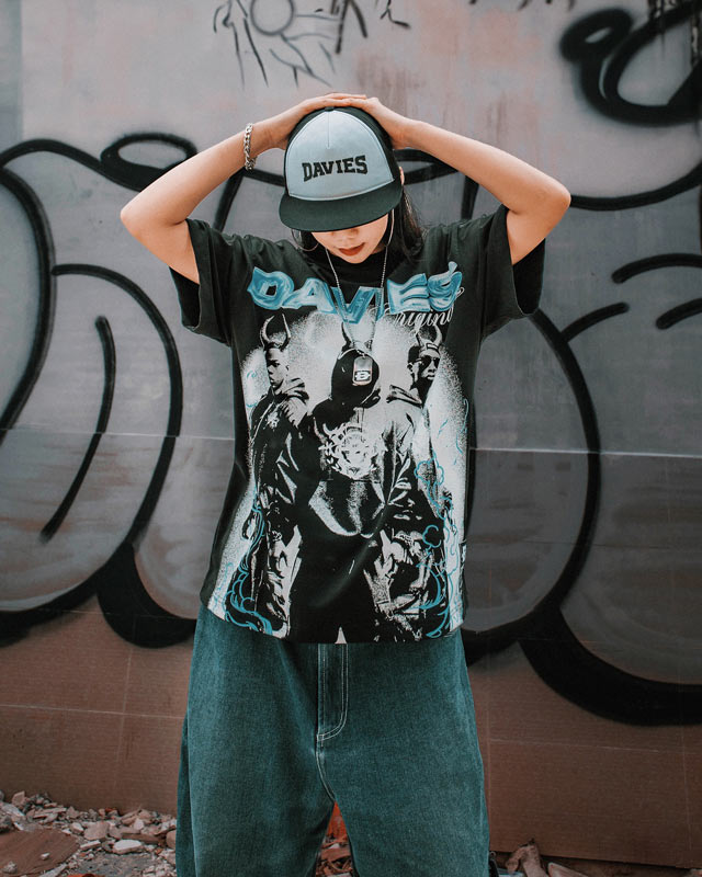 Áo thun in hình local brand Davies với form áo đậm chất đường phố