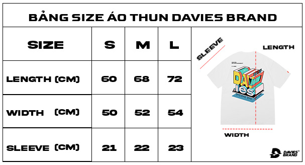 Kết quả form áo là trung bình cộng ý kiến của hơn 1000 khách hàng Davies, do đó phù hợp với hầu hết các bạn nữ với 3 size bao gồm S/M/L. Các bạn nữ dễ dàng lựa chọn áo thun từ size vừa vặn cho đến chiếc áo thun form rộng theo sở thích.