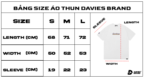 Chọn size phù hợp nhất trước khi ĐẶT MUA áo thun local brand Davies - White LCD Tee thì đừng bỏ qua thông tin size bên dưới nhé.
