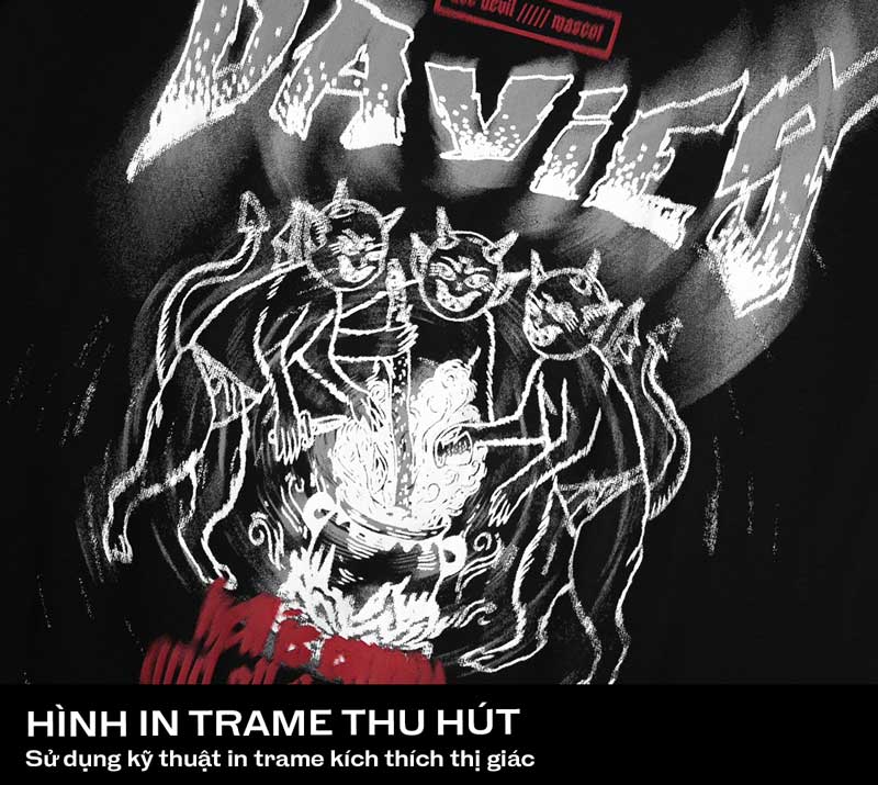 DAVIES luôn tiên phong áp dụng công nghệ vào những sản phẩm của mình. Kỹ thuật hình in trame giúp logo nổi bật thể hiện được hiệu quả tinh thần đến người mặc.