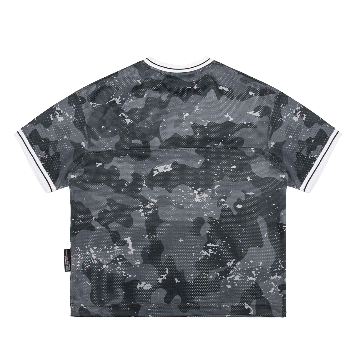 Lấy cảm hứng từ họa tiết rừng đô thị, lớp in nhiệt Camo trên áo tạo nên hiệu ứng thị giác mạnh mẽ, pha trộn giữa sự cổ điển và tinh thần nổi loạn của thời đại mới. Tông màu được xử lý sắc nét, đảm bảo độ bền màu dù qua nhiều lần giặt.