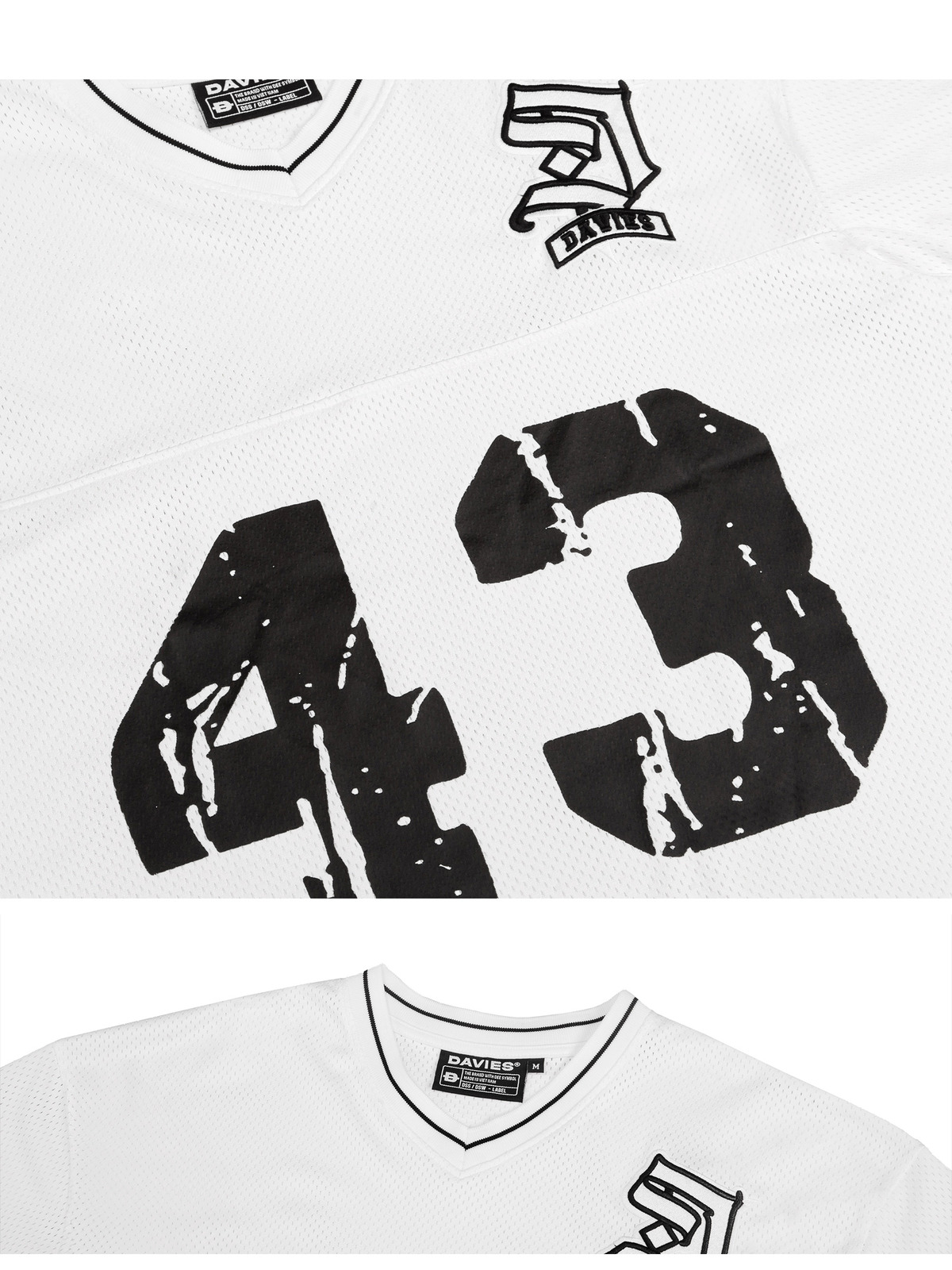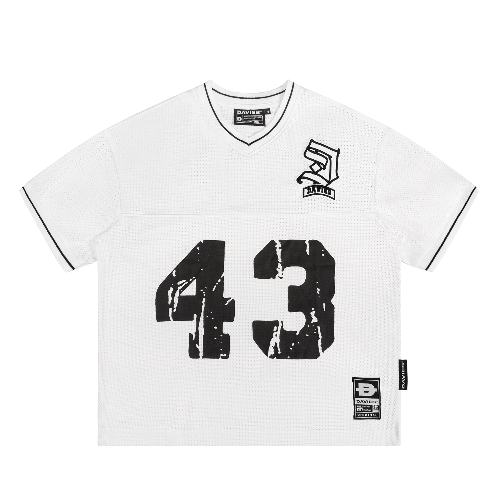 Áo nổi bật với số 43 in lụa sắc nét, kết hợp logo DAVIES thêu chỉ nổi cách điệu mang đậm tinh thần thương hiệu: nổi loạn nhưng tinh tế. Logo không chỉ là chi tiết trang trí mà còn khẳng định tuyên ngôn “Dare To Begin” – khuyến khích người mặc dám khởi đầu, dám khác biệt.