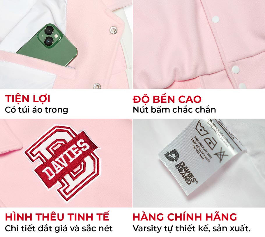 Áo varsity jacket local brand màu hồng phiên bản limited nên có.