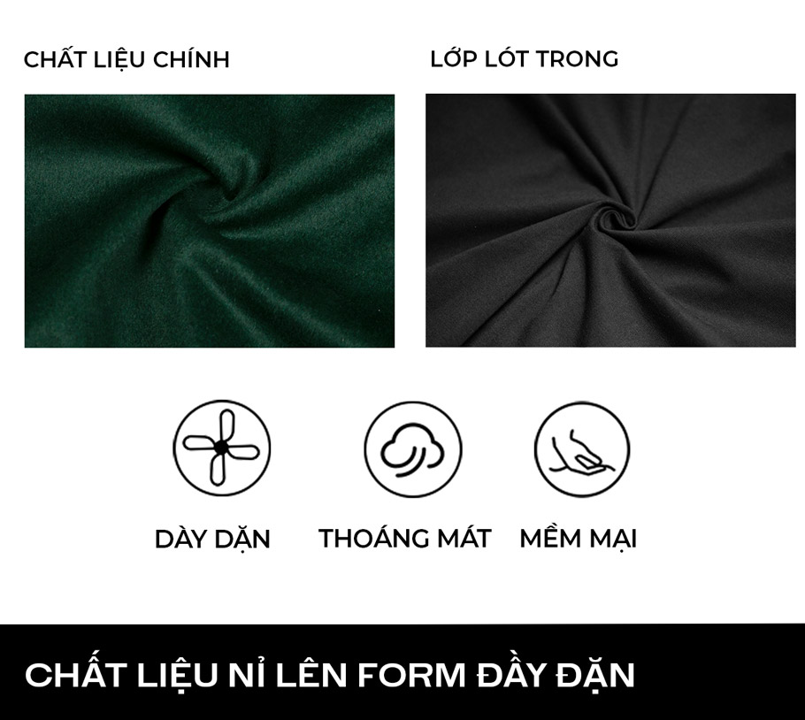Áo khoác bomber bóng chày sử dụng chất liệu nỉ chần bông với độ dày dặn vừa phải mang đến sự thoái mái khi mang.