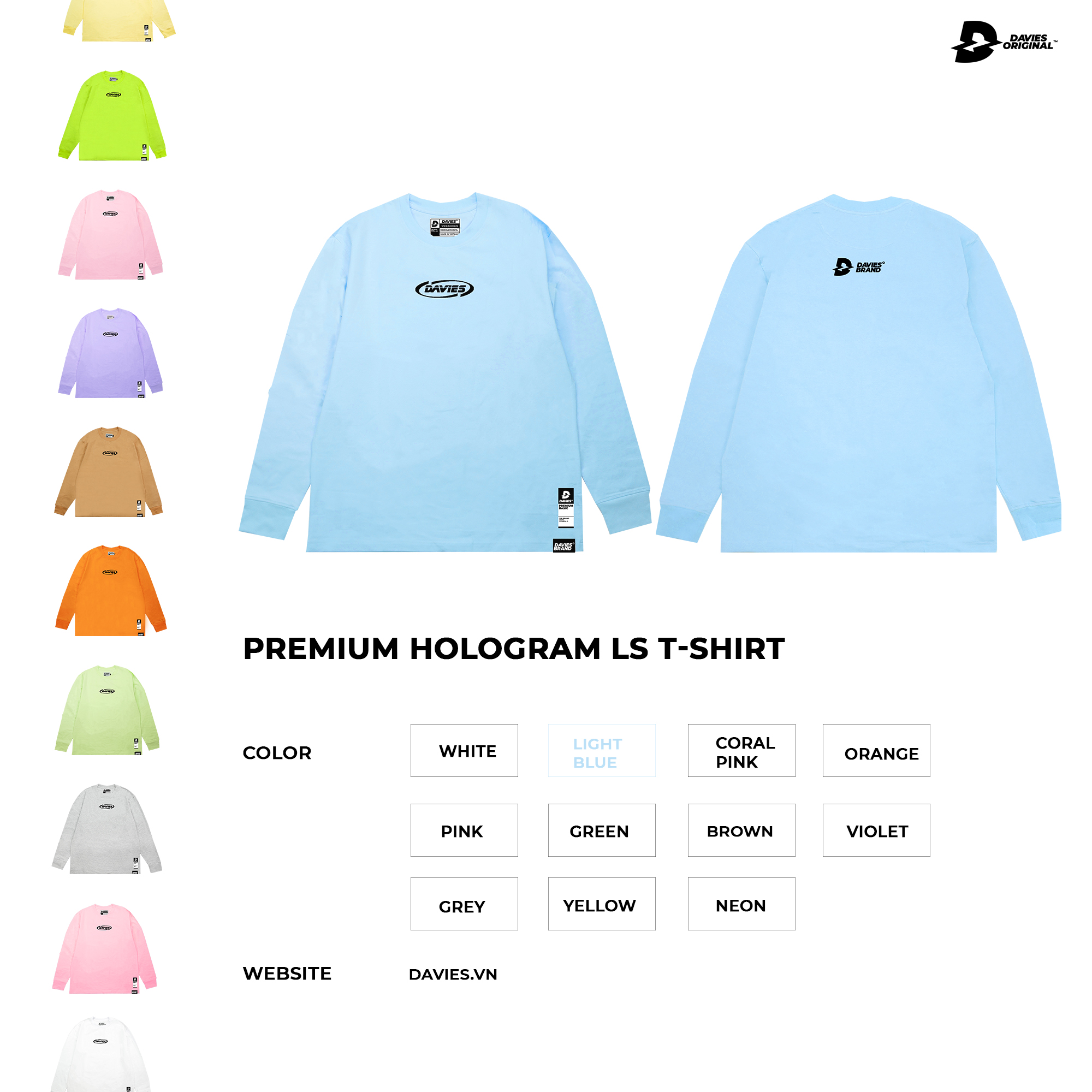Dành cho những bạn muốn thay đổi cá tính nhưng không muốn “thoát khỏi diện mạo đơn giản”, phần thưởng đầu năm 2020 Davies mang lại đó là Premium Collection. Luôn tìm ra những bước chuyển mình để làm mới các Daviesfan bằng cách bổ sung những SẮC hoàn toàn mới. Đặc biệt thiết kế được sử dụng chất liệu in phản quang Hologram đặt tại vị trí trực tiếp trên Davies, bật LIGHT để Test.