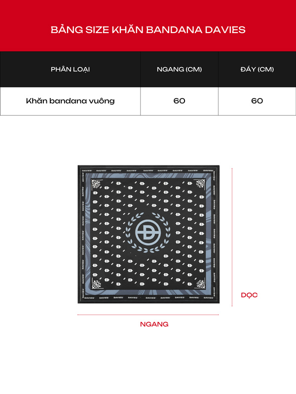 DAVIES luôn đặt chất lượng lên hàng đầu. Từng sản phẩm, bao gồm cả khăn bandana, được nhận diện bằng logo thương hiệu đặc trưng in hoạ tiết một cách tinh tế.