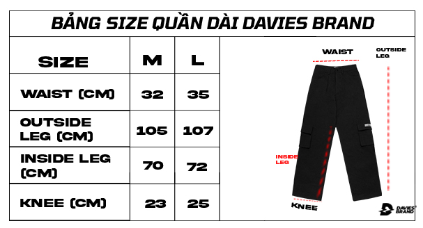 - Kích thước quần được may theo tiêu chuẩn riêng Davies phù hợp hầu hết các bạn nữ.