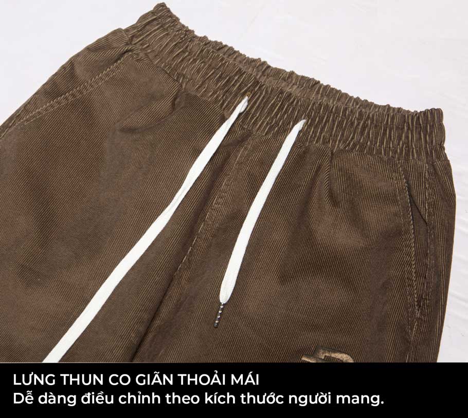Với thiết kế lưng bo thun, bạn dễ dàng điều chỉnh độ rộng của quần local brand để phù hợp với eo, hông của mình.